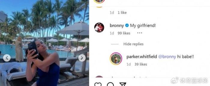 这不?布朗尼在社媒上与女友惠特菲尔德大秀恩爱,点评了女友最新的度假动态:“这是我的女朋友!”
